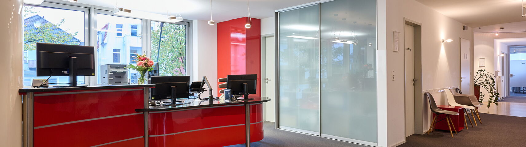 Unsere Praxis befindet sich im Erdgeschoss sowie im 1. Obergeschoss und ist barrierefrei zugänglich.
